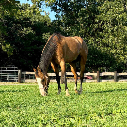Seven is a soft and loving horse who has faced challenges and emerged even more tender-hearted. Reserved and calm, he keeps to himself until he feels safe, offering a steady and gentle presence that welcomes all feelings without fear.